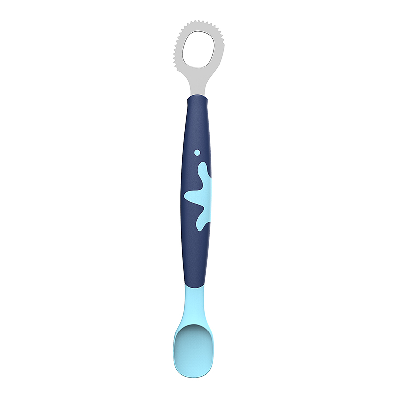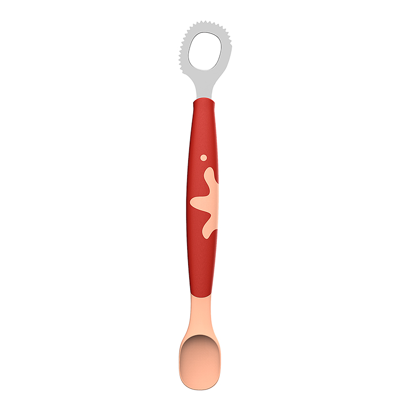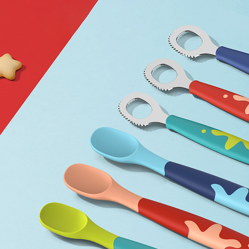 Baby eats fruit mud scraped spoon stainless steel double head feed apple mud baby silicone spoon tool for baby silicone