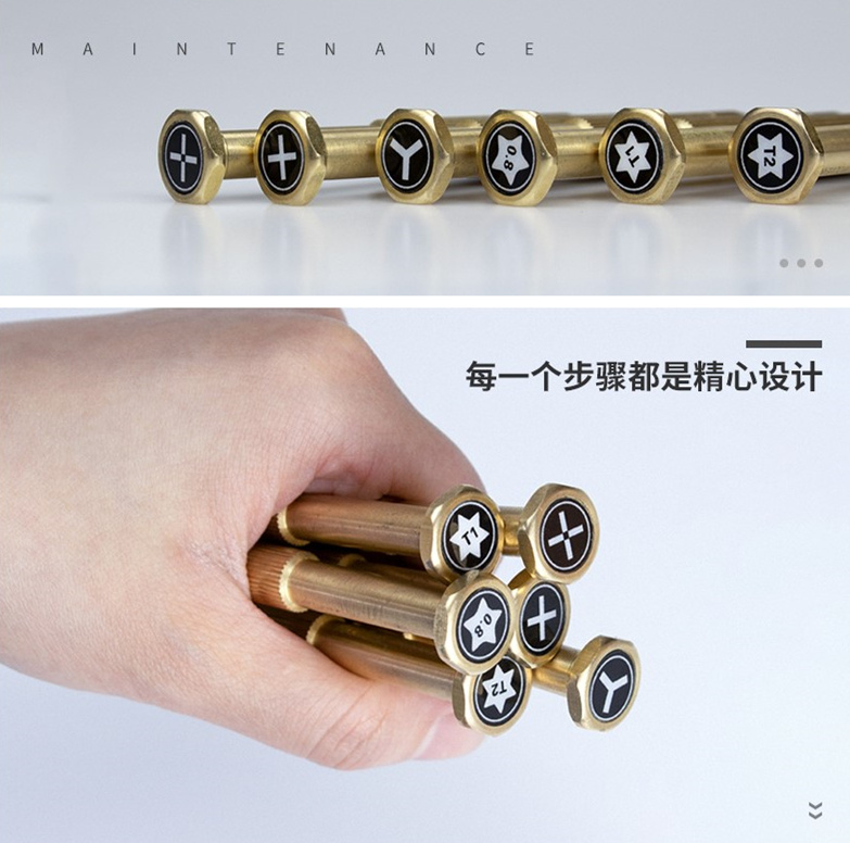 0 8 Five-star screwdriver - copper handle 1 3 Phillips screwdriver - copper handle 1 5 Phillips screwdriver - copper handle Y0 6 triangle screwdriver - copper handle 2 5 Medium plate screwdriver - copper handle T1 six star