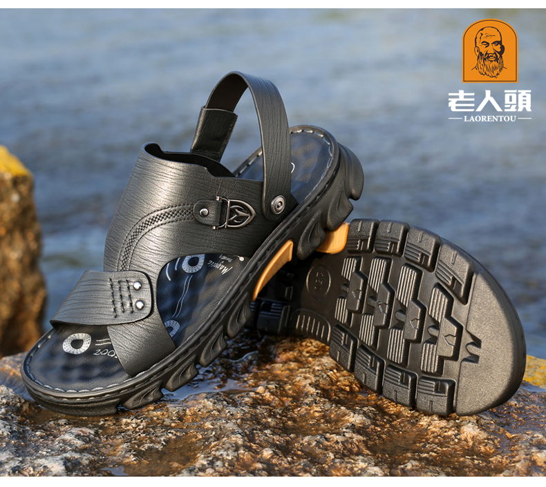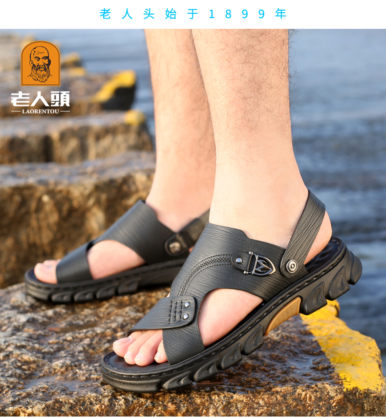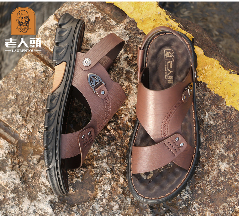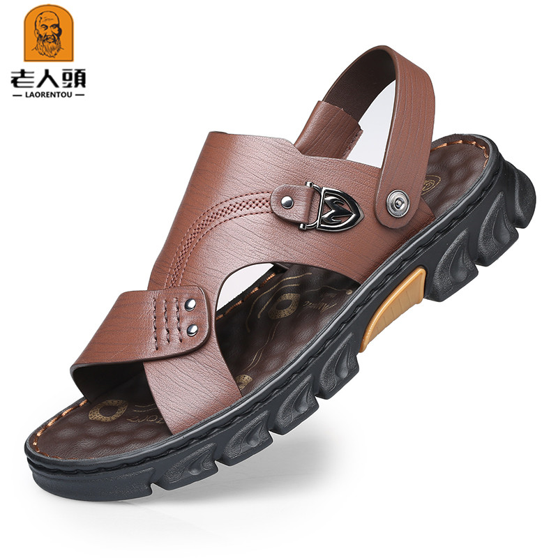 Summer sandals Male genuine leather old man's head thick bottom soft-bottom casual breathable black brown middle-aged men's beach shoes