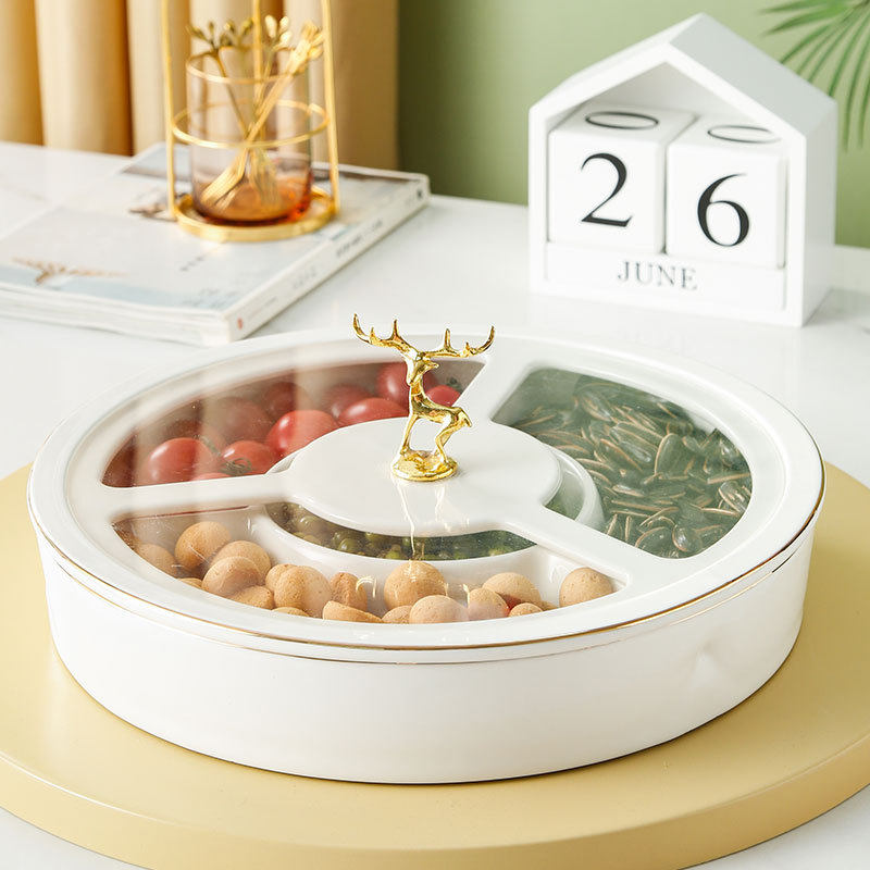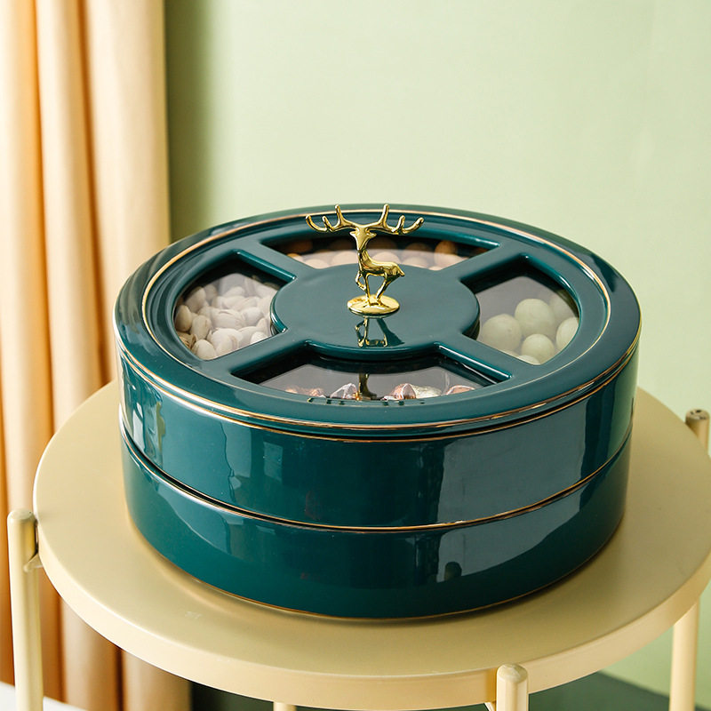 Nordic Elk Deer Ceramic Home Multilayer split Candy Dry Fruit Pan Case Snack Nut Containing Case Double with lid