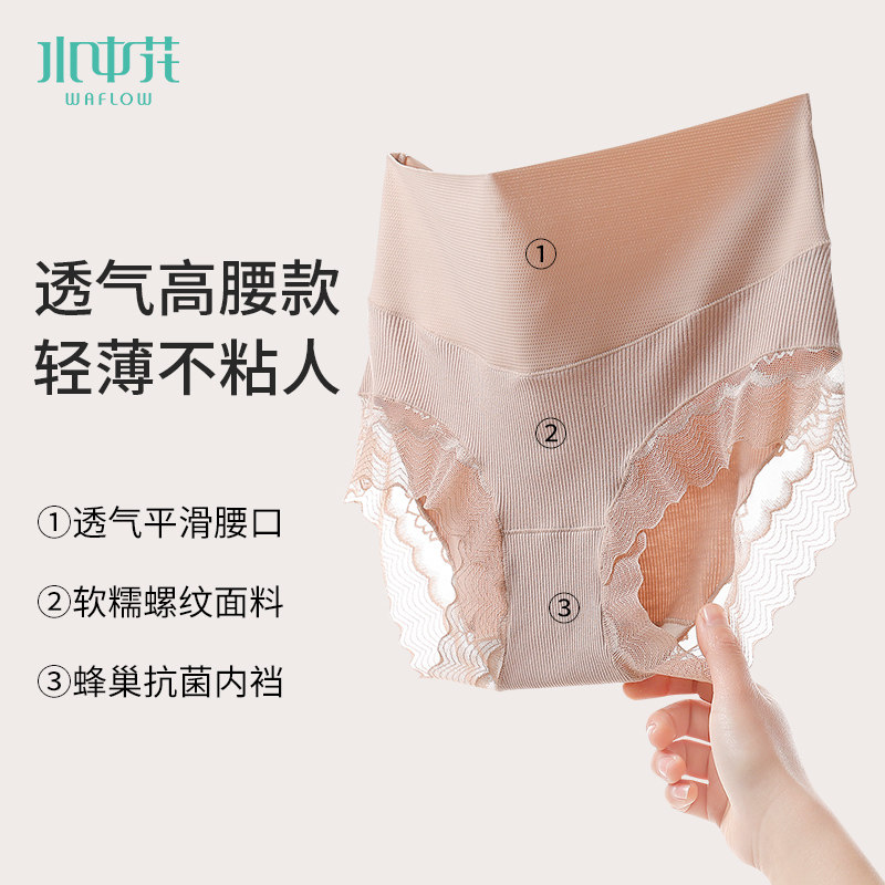 3 water Flower lace Underpants No-mark female summer light and thin breathability sensation with hip high waist collection and abdominal triangle pants