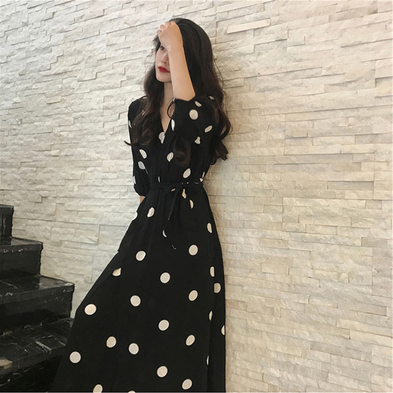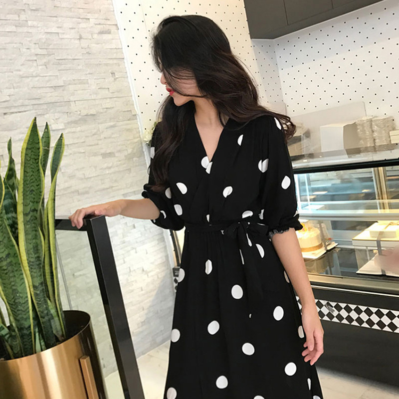 Hong Kong 2022 new Summer size Size Ocean Pie wave Half-time dress Dress Woman Fat Mm Display Slim Cover Snowspun Long Dress