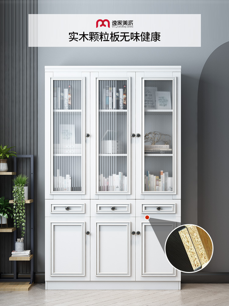Bookcase modern minimalist office storage cabinet against the wall with glass door combination cabinet home American storage cabinet