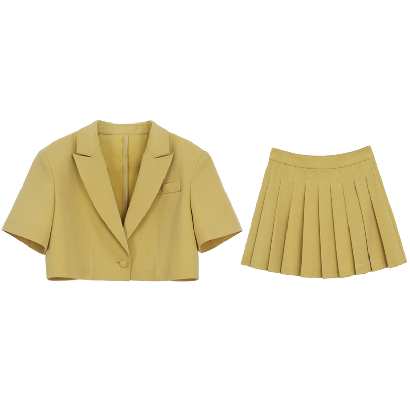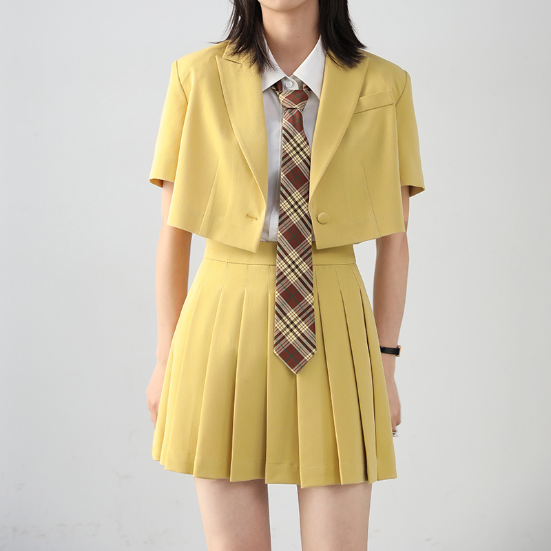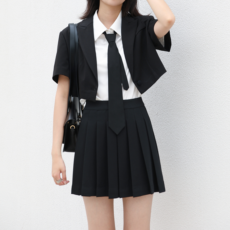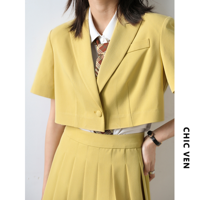 CHICVEN "Oriental Fantasy" Age Reduction College Style Short-sleeved Suit High Waist Pleated Skirt Two-piece Female