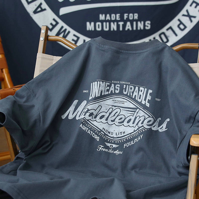 "Veteran"summer American old printing short-sleeved T-shirt men's casual tide brand round neck vintage washed retro