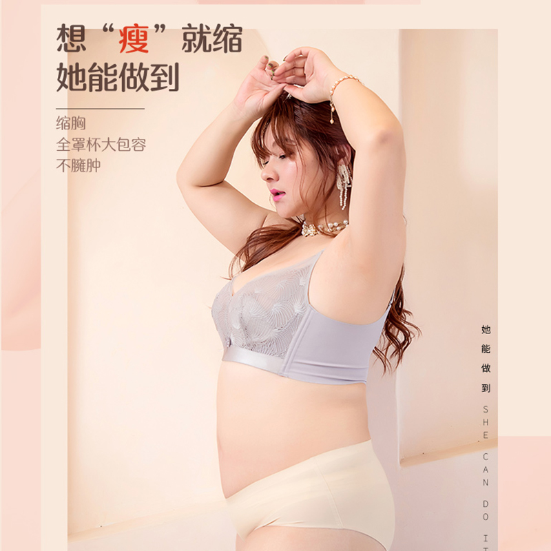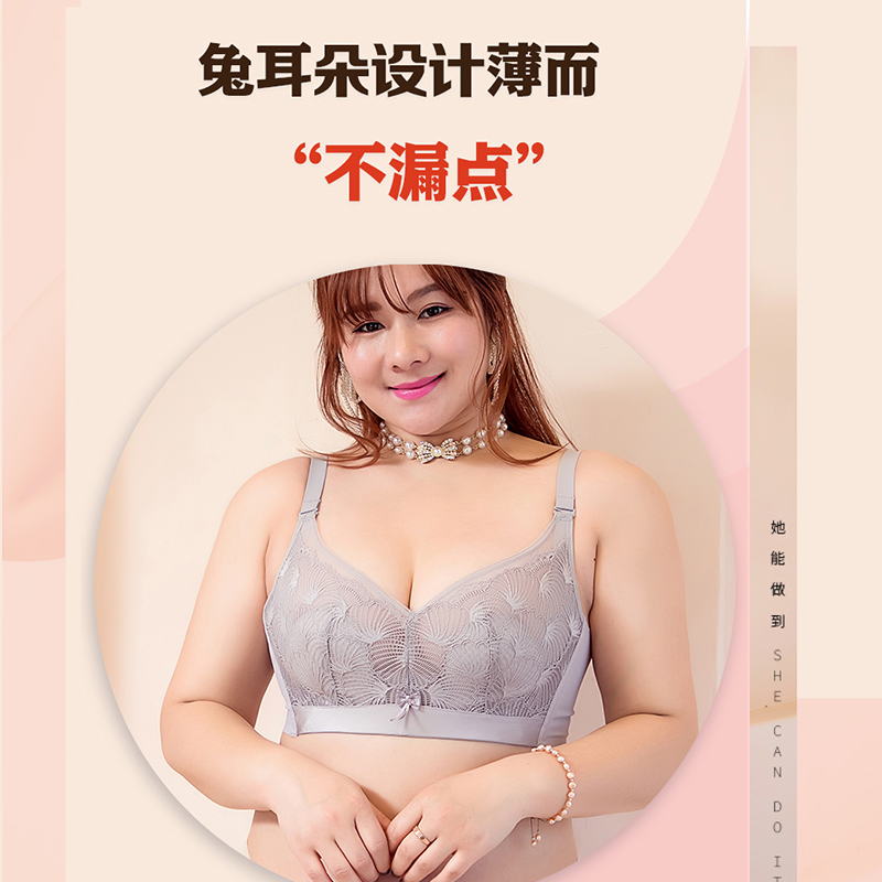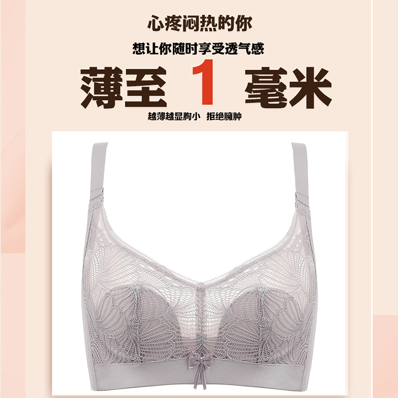 Plus size underwear women's thin section big breasts show small summer ultra-thin sexy non-sponge no steel ring gathered anti-sagging bra