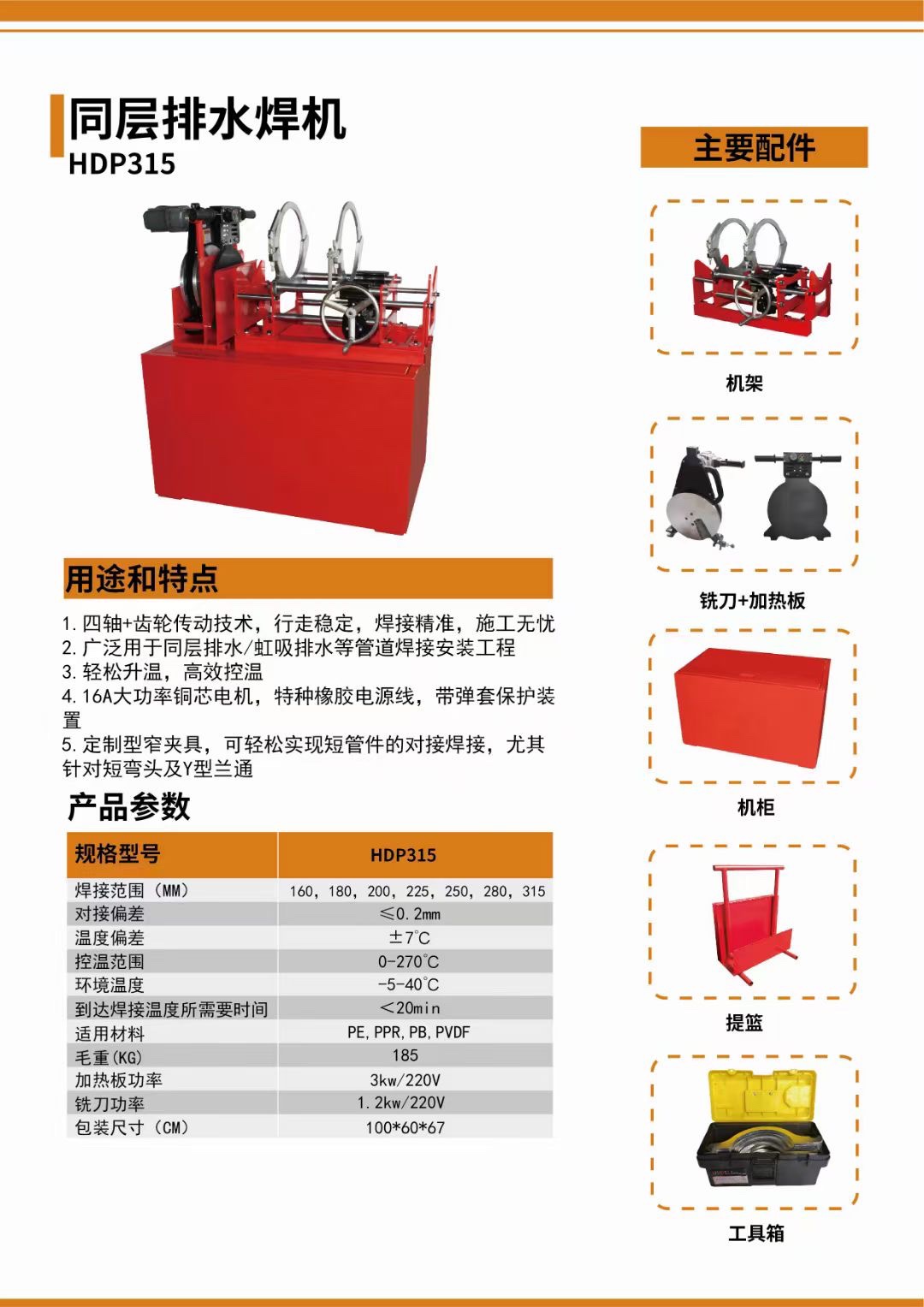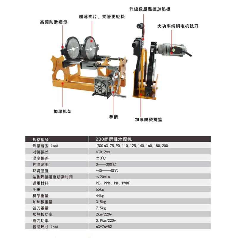 50-160 of the same layer of drainage hot-melt welding machine 60-200 of the same layer of drainage hot-melt welding machine 30-160 of the same layer of drainage electro-fusion welding machine 30-315 of the same layer of drainage electro-fusion welding machine 90-2