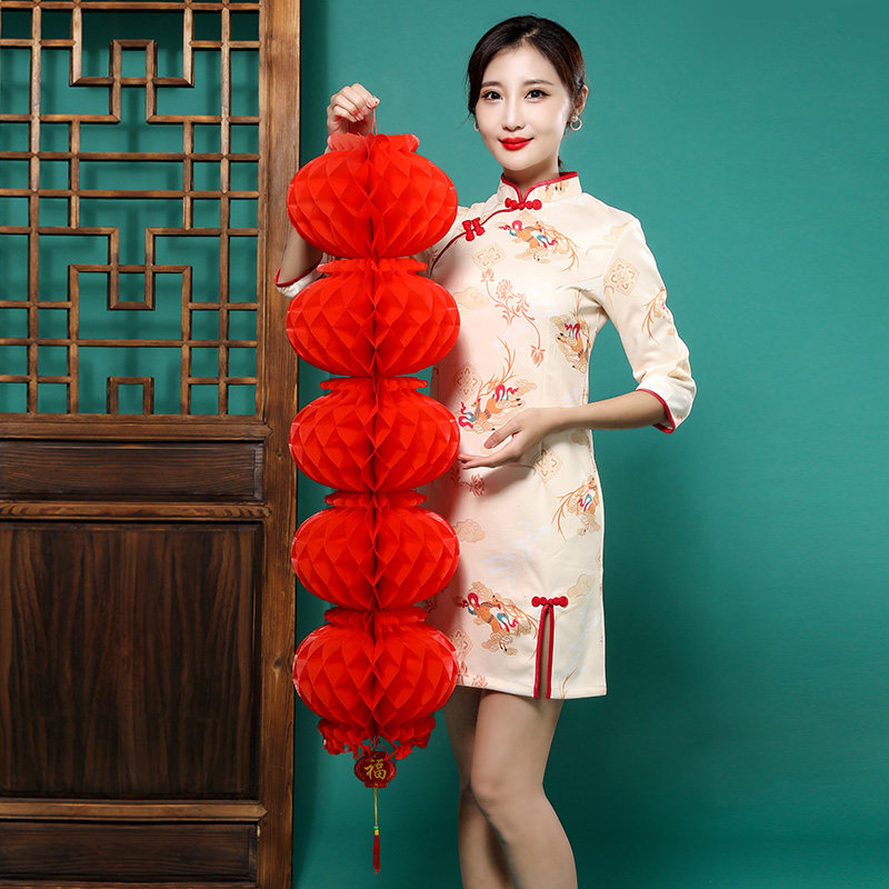 Red lanterns series of honeycomb paper lanterns Spring Festival New Year celebration New Year festive mall decoration small lantern string