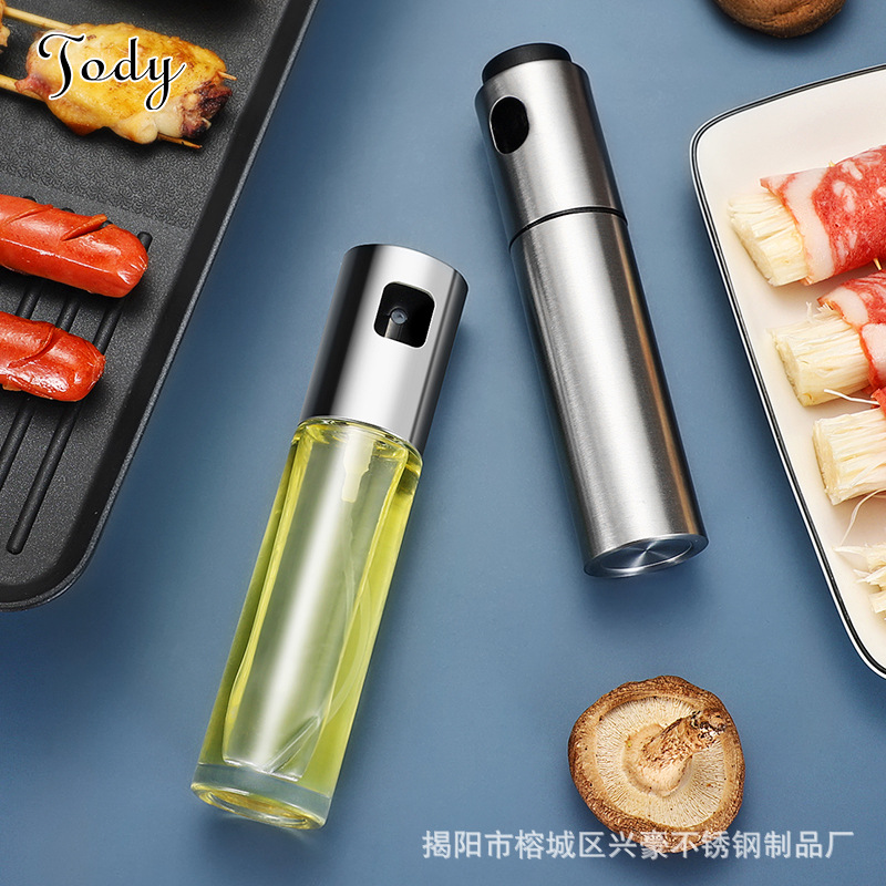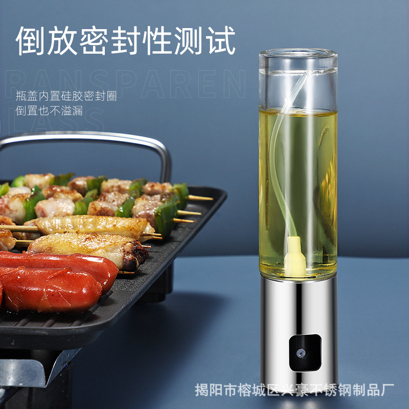 Home Oil Spray Bottle Glass Oil Pot Soy Sauce Vinegar Sprayer Small Oil Bottle Stainless Steel Kitchen Press Spray Bottle Barbecue