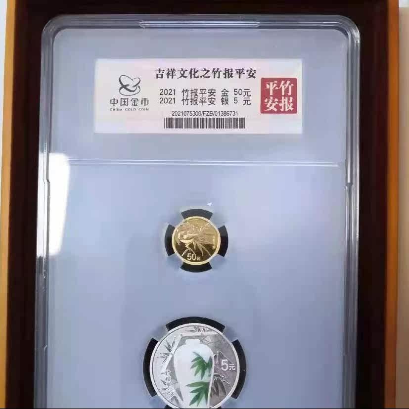 Spot Bamboo Daily Ping An Golden Silver coin 2021 Auspicious Culture Gold Silver Coin 3 gr Gold 15 gr Silver