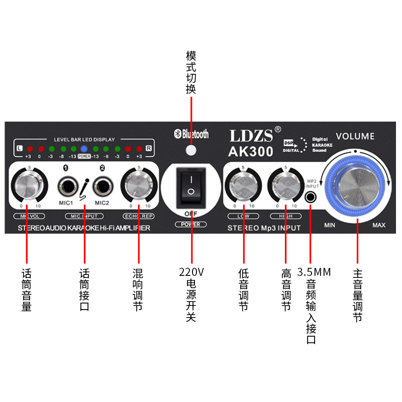 High power Bluetooth power amplifier dual track card OK Home HIFI Fever Professional Multifunction Radio U Pan