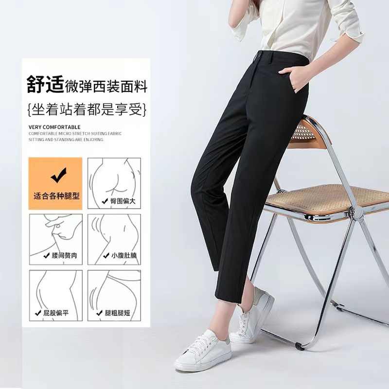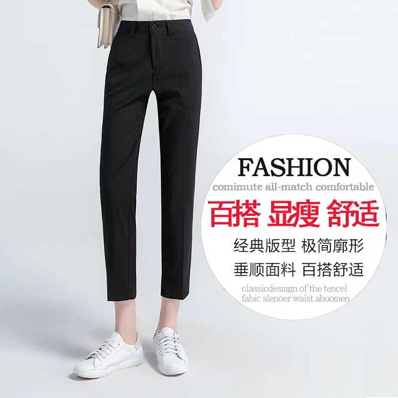 Small trousers female straight tube 2022 new summer nine points thin high waist drape small professional smoke pipe suit pants female