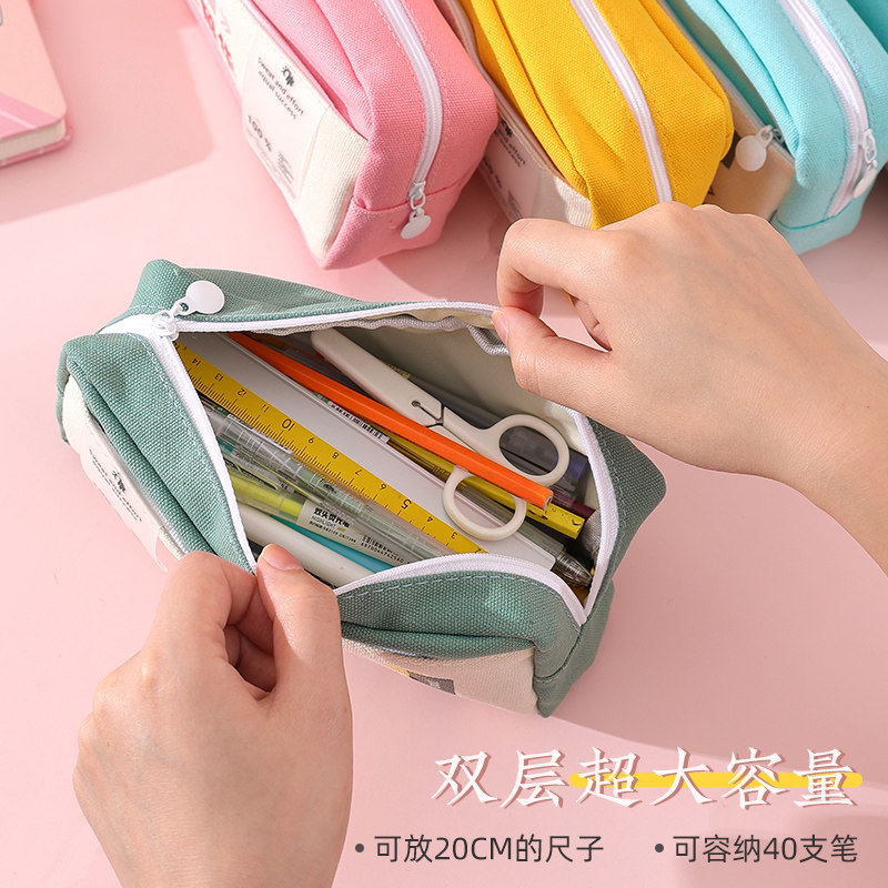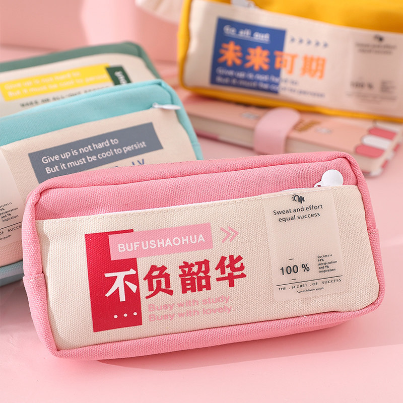 Day Department Words Small crowdwork Canvas Pen Bag 2022 New pop ins Primary School Primary school students Lead pencil case Men's brief online Red students Korea Girl Hearts Large-capacity Pencil Case Girls