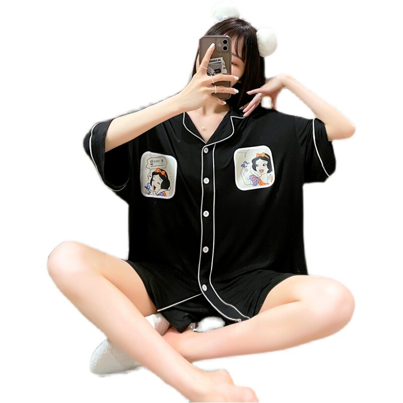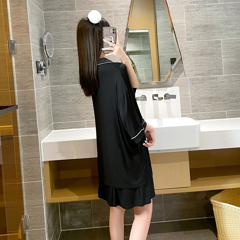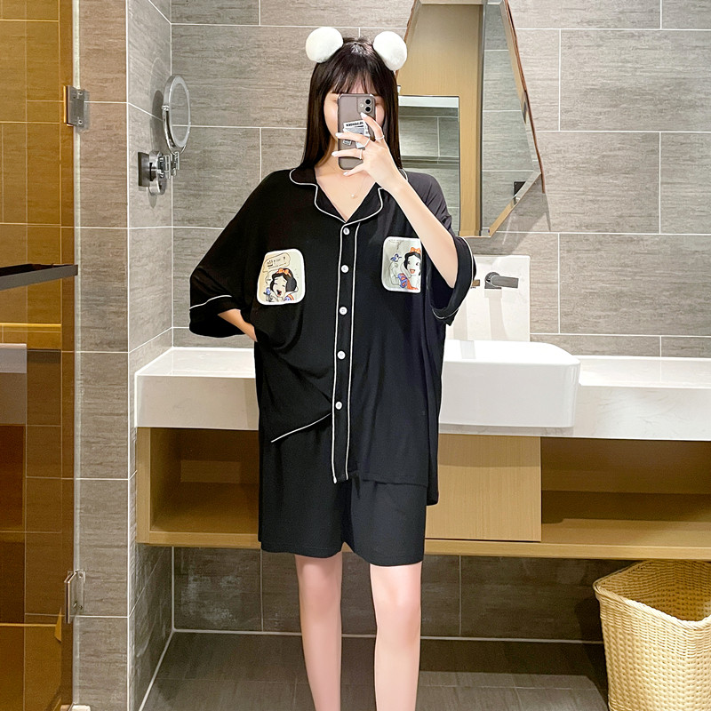 Summer large size loose short-sleeved pajamas women 200 catties modal thin section pregnant women fat MM cardigan home service suit