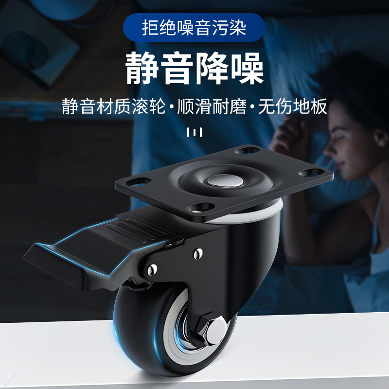 Universal wheel heavy-duty silent flatbed 1 5 3 inch ground pulley rubber wheel with brake wheel small wheel