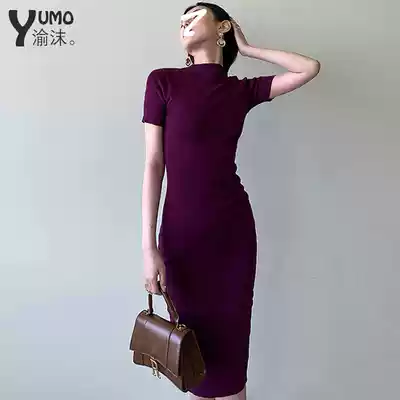 Early autumn knitted dress women Summer Slim fashion slim high-end temperament black high-end tight-fitting hip long skirt