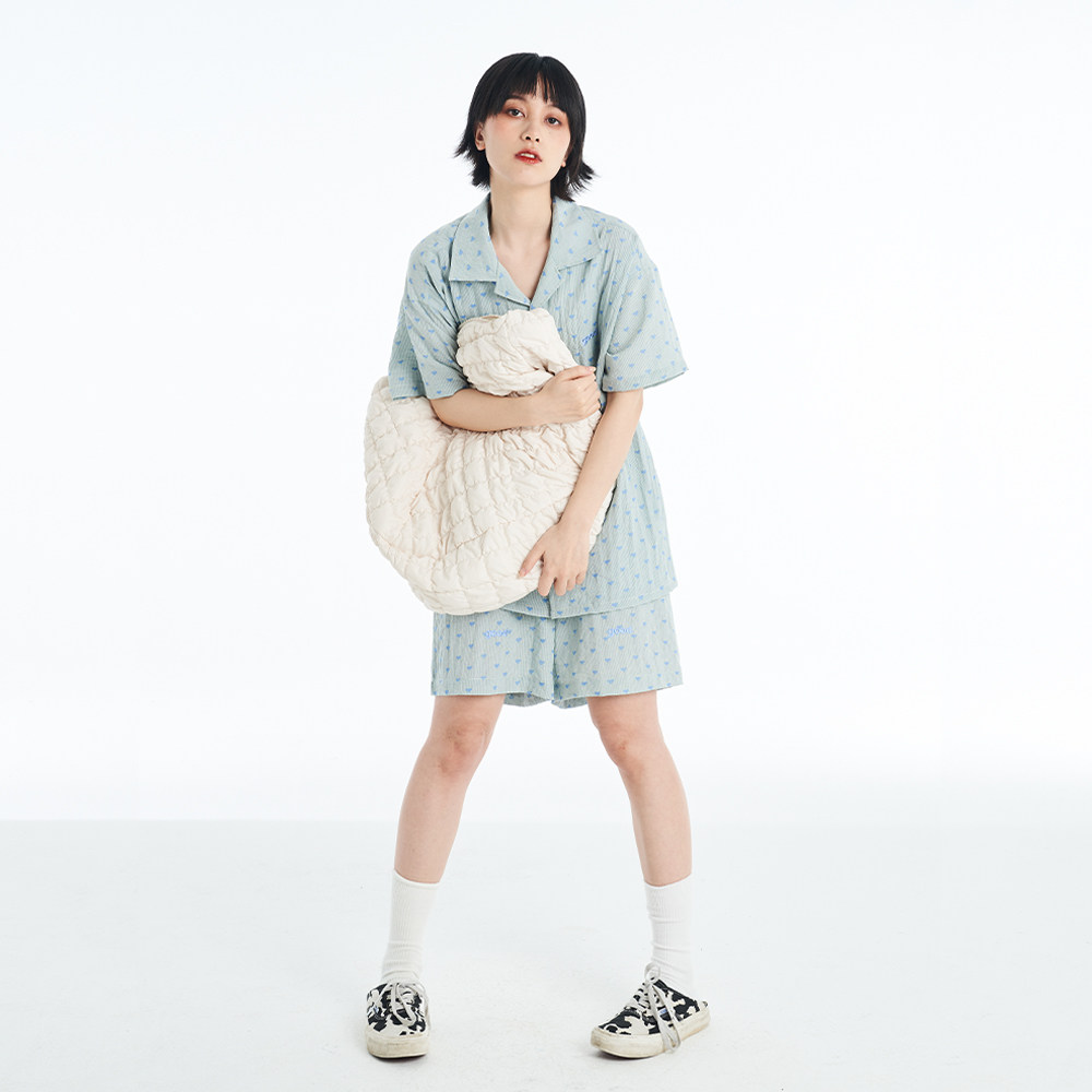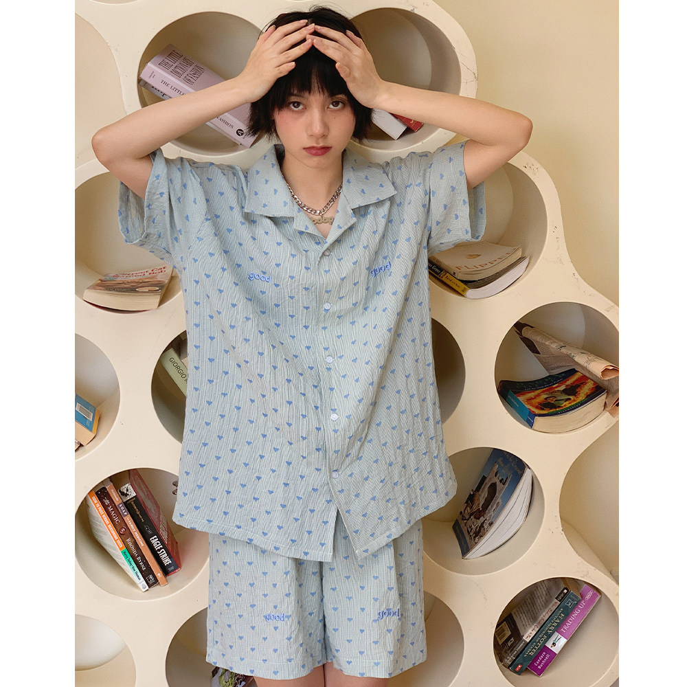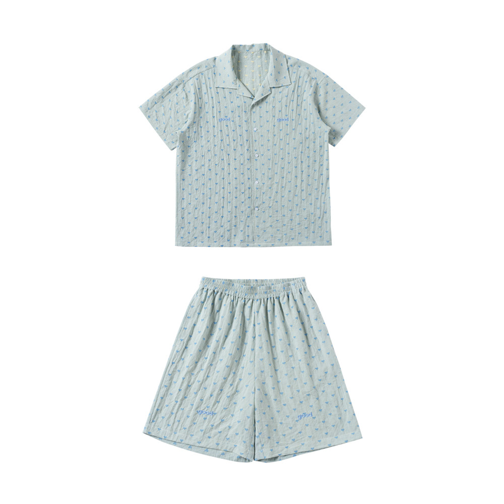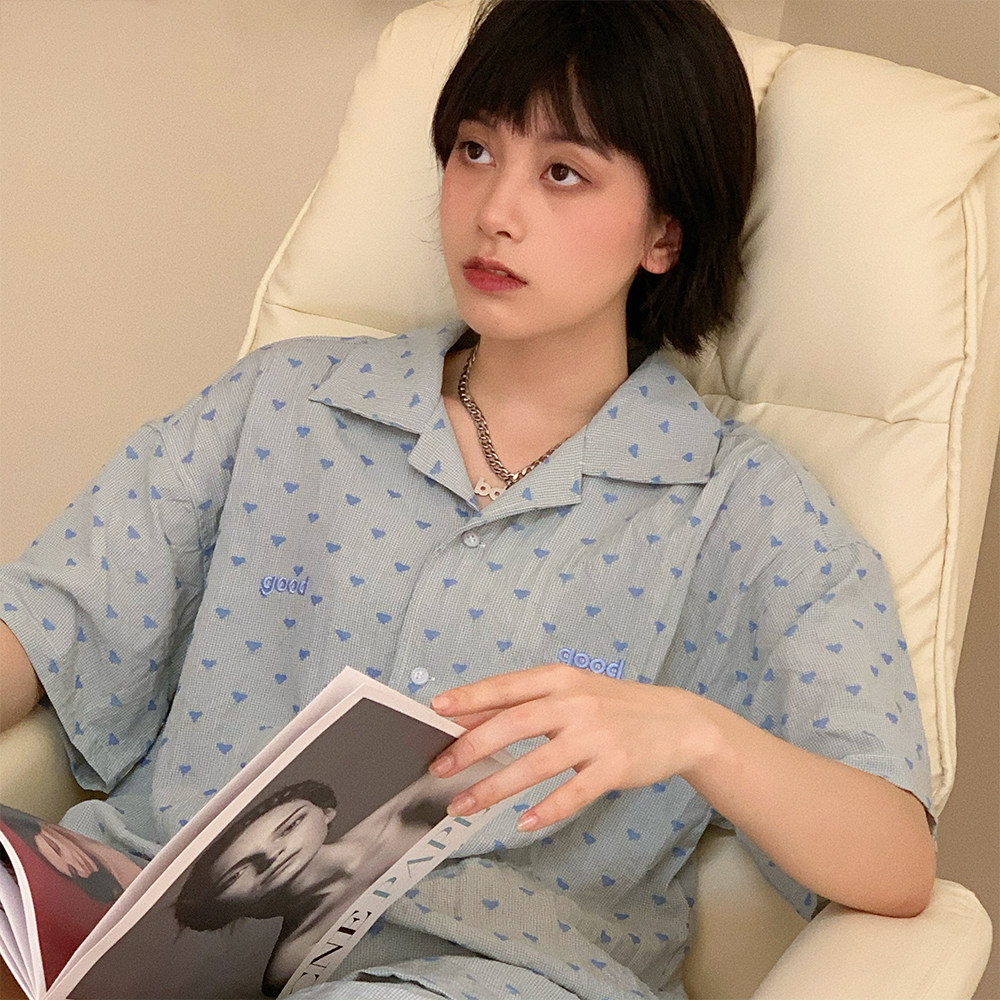Beautiful Store MeihaoStore Light Blue Love Floral Super Comfortable Short Sleeve Thin Soft Pajama Pants Set