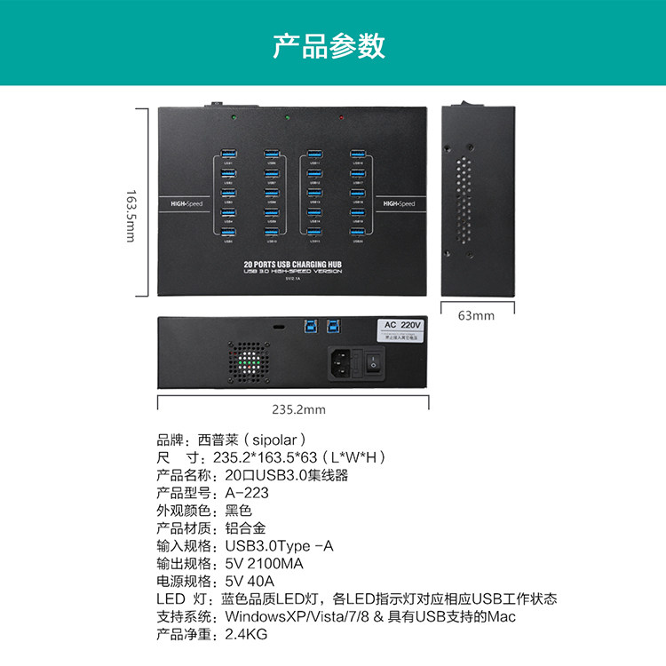 Xipulai 20-port A-223 industrial-grade computer USB expander A-213P high-speed extension cable brush machine A-210P