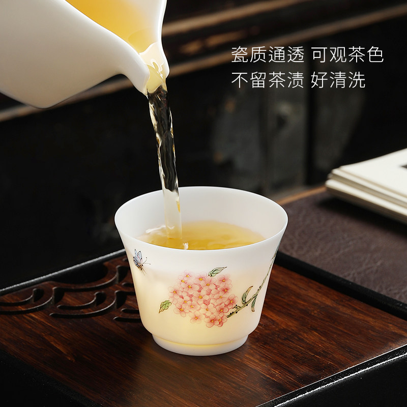 Wonderful Lotus-scented white porcelain hand-painted floral fruit master cup goat fat jade thin tyre tasting tea cup personal single-cup female