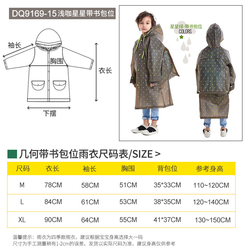Bao Yuni children's raincoat boys elementary school students with school bag seat full body waterproof girls thick big kids poncho