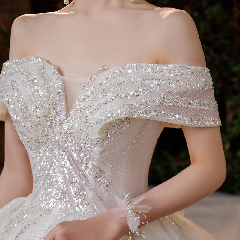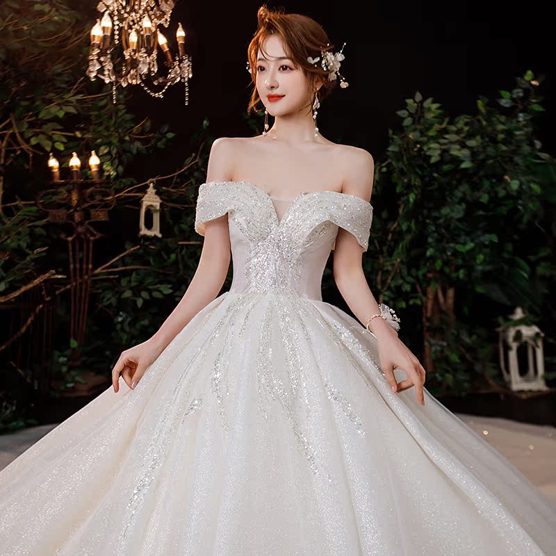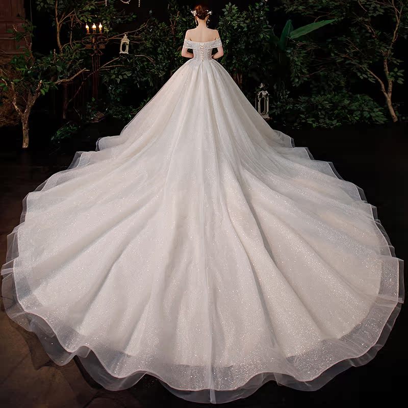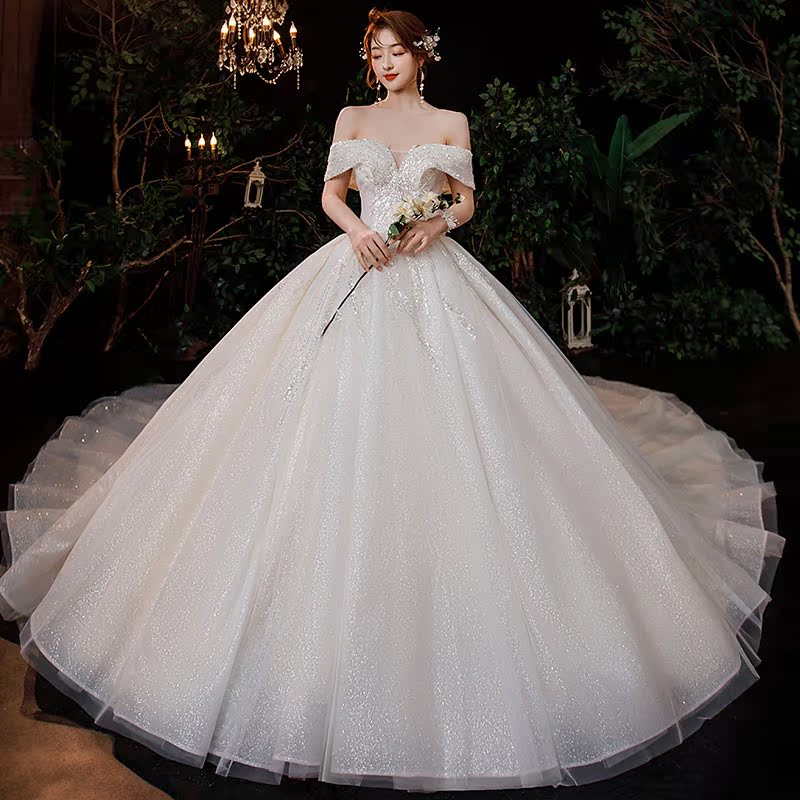 French light main wedding dress 2021 new word shoulder bride luxury retro simple small child high-grade sense of tail