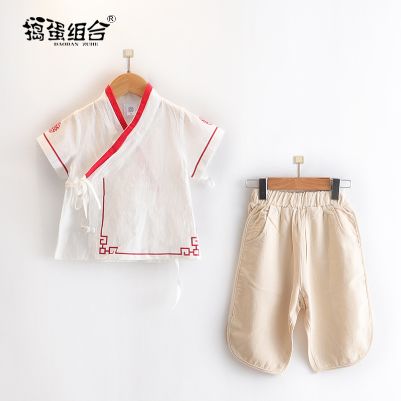 Boy Han clothes Chinese wind retro ancient clothes Summer thin children Tang Bottling Baby's Birthday Dress Retro National School Uniform
