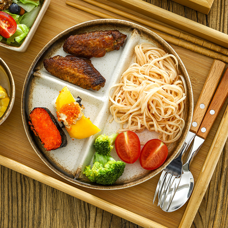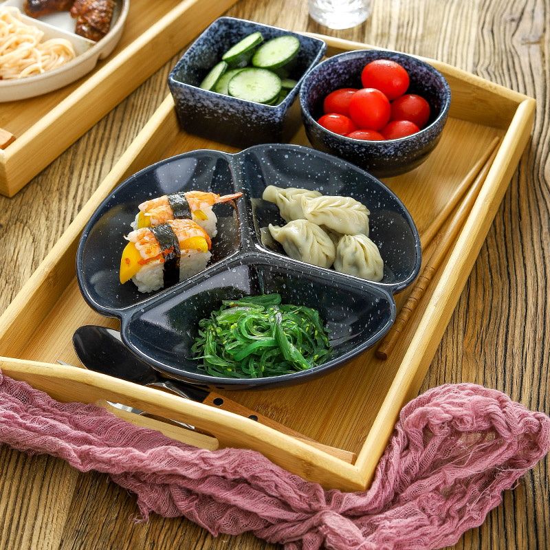Sesame gold-fork-shaped three-compartment set Antique glaze blue-fork-shaped three-compartment set Starry sky fog sea-fork-shaped three-compartment set Retro pearl-fork-shaped three-compartment set Poetic December-fork-shaped three-compartment set