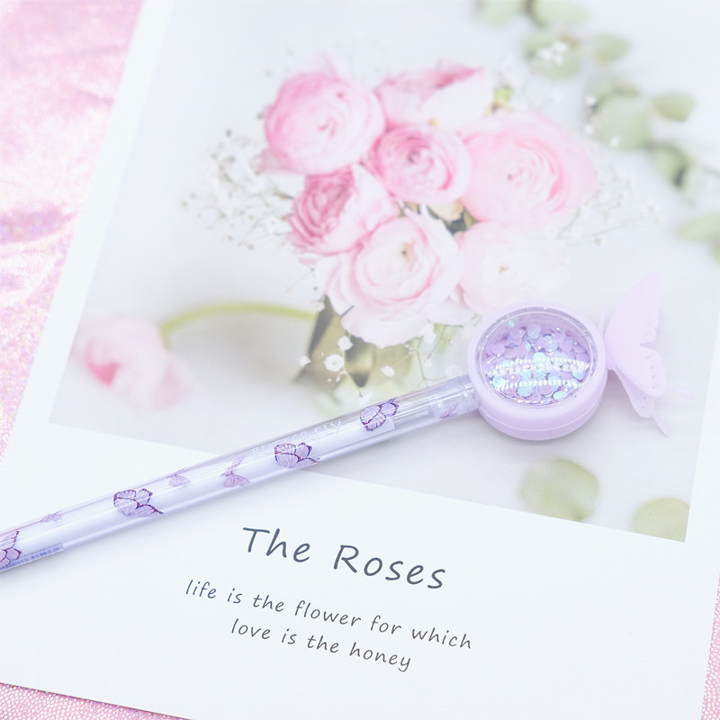 4 packs of cute ins girl heart sequins butterfly gel pen creative mosquito repellent signature pen student exam pen office water-based pen mosquito repellent effect gel pen net red cute super cute creative stationery