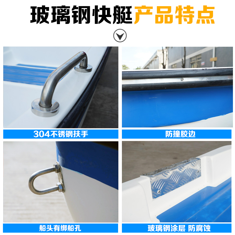 Factory direct sales of pure fiberglass fishing boat speedboat assault boat fishing cleaning fishing boat salvage boat can add outboard machine