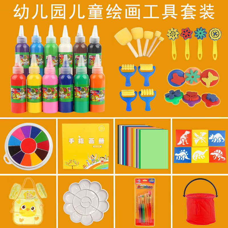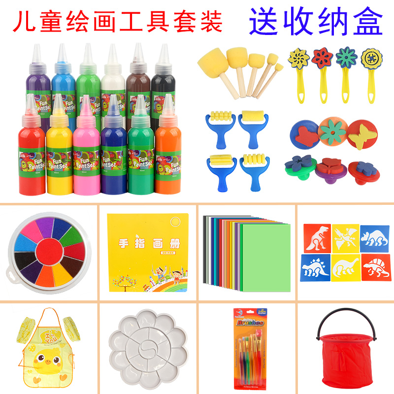 Children's diy painting material set watercolor paint sponge painting brush art painting graffiti rubbing tool package