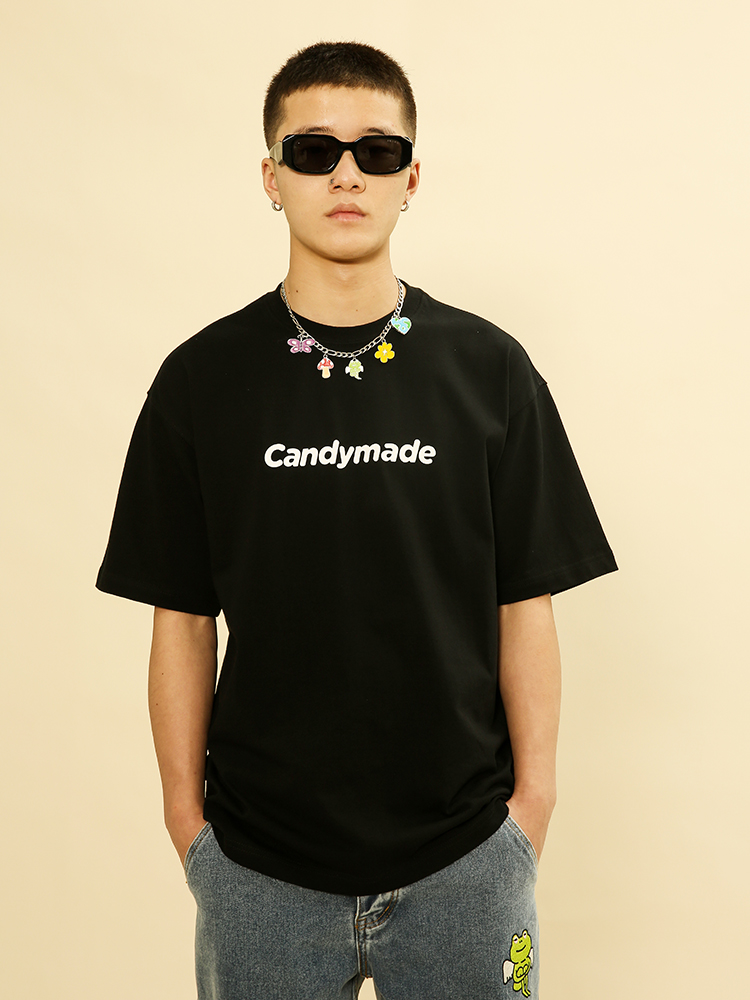 Candymade American loose cotton simple LOGO printing round neck black and white short-sleeved T-shirt