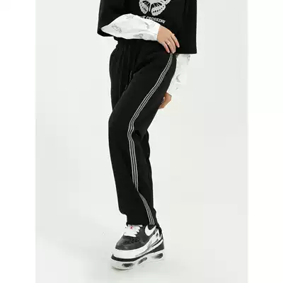Dosho men's drawstring elastic waist reflective Korean loose trousers men's ironing-free straight hanging casual pants trend