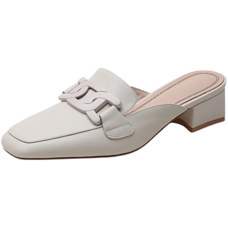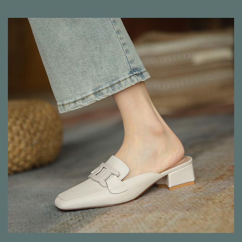 Baotou half-slipper Muller shoes women's fashion outer wear lazy square-toe middle-heeled thick-heeled sandals and slippers French leather summer