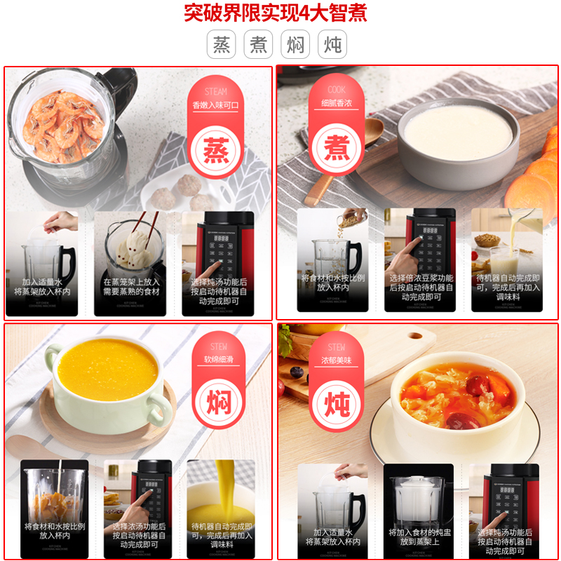 Hettich Wall Breaker Home Heating Fully Automatic Small Blender Multifunctional Bass Filterless Soy Milk Machine New Model