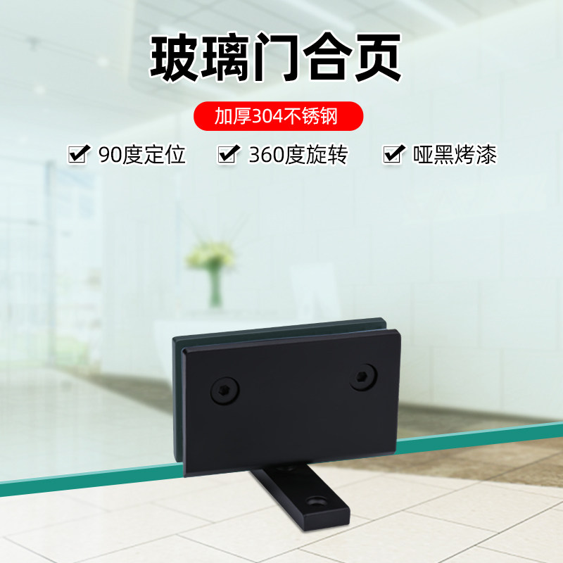 Glass door hinge 360 degree frameless door clip dumb black 304 stainless steel bathroom clip shower room heaven and earth clamp hinge