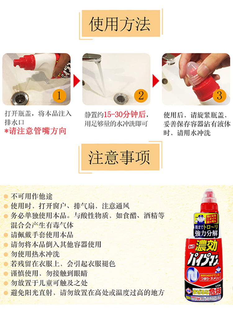 Japan LION Lion King LOOK Toilet Piping Sewer Kitchen Toilet Bacteriostatic Decontamination Dredge 450ml