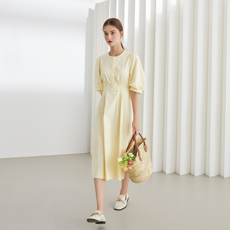 Fan Si Lan En lantern sleeve dress women's 2021 summer new high-waisted thin fairy waist temperament skirt