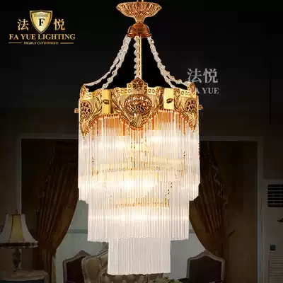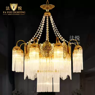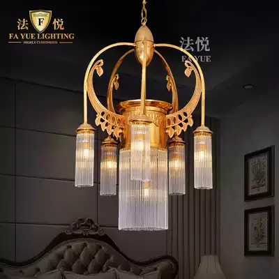 French Villa chandelier all copper living room dining room crystal lamp court retro European style compound building high-end creative lamps
