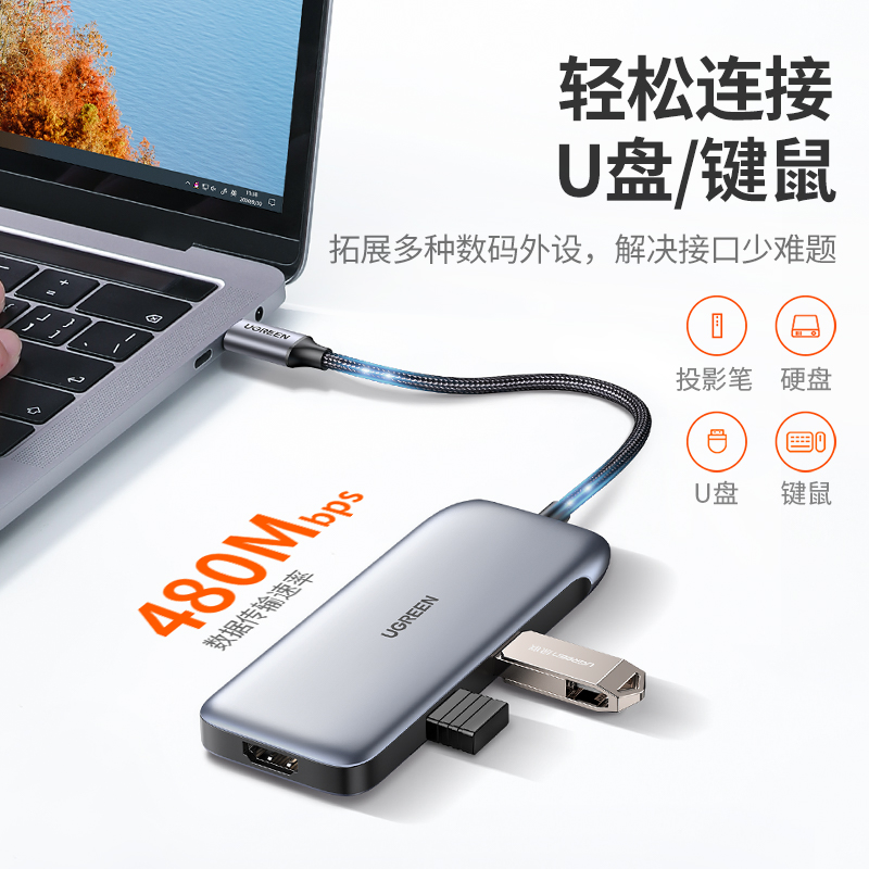 Green Union Type-C dock expands to HDMI conversion miniDP HD projector USB laptop