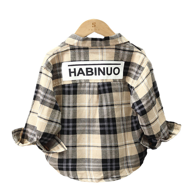 Boy Clothing Boy Shirt 2021 Spring Fall New Kids Foreign Pie Shirt Mid-Boy Korean Version Blouse Boy Coat