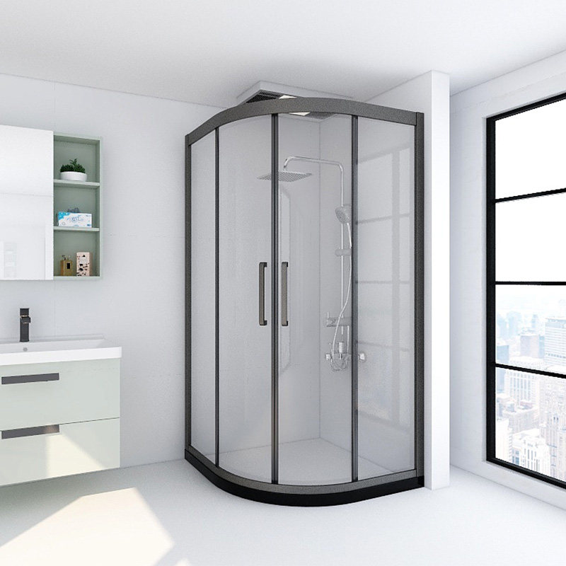 Shower room partition arc fan-shaped powder room bathroom wet and dry separation glass door overall bath 304 stainless steel net red