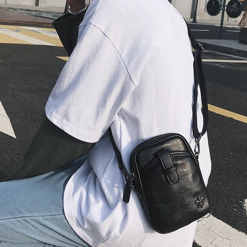 Tide brand fashion youth small bag outdoor sports cycling leather satchel Korean version of leather men's shoulder bag mobile phone bag