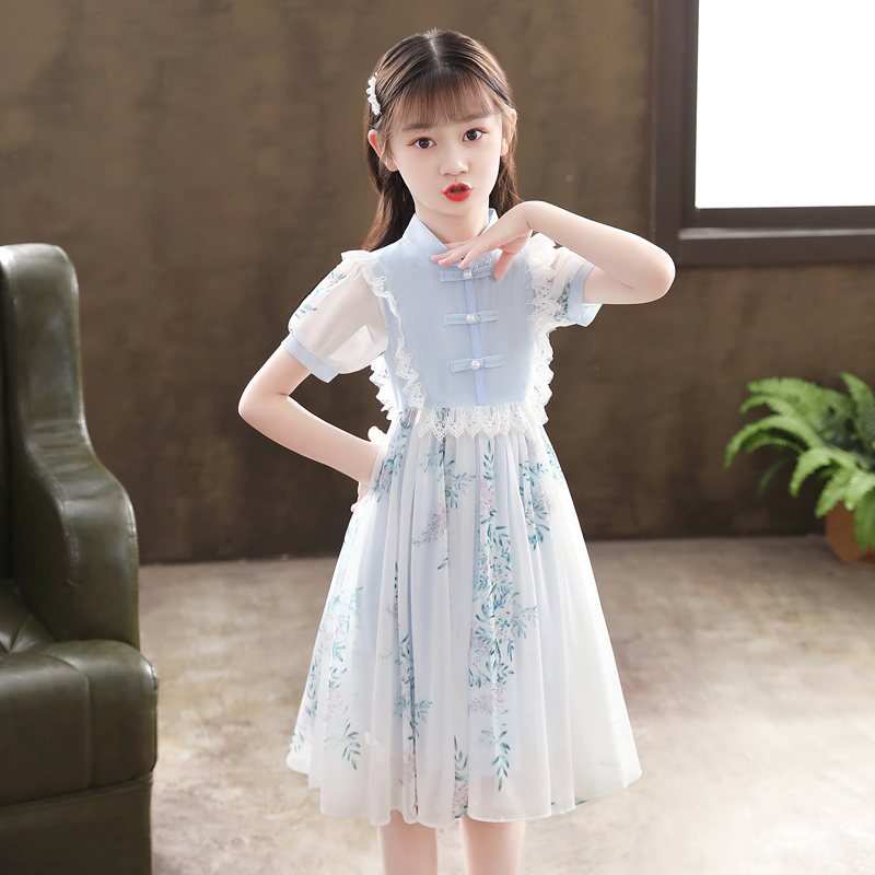 2022 New Style Girls Hanfu Summer Dress Kids Dress Little Girl Princess Skirt Dress Cheongsam Skirt Summer