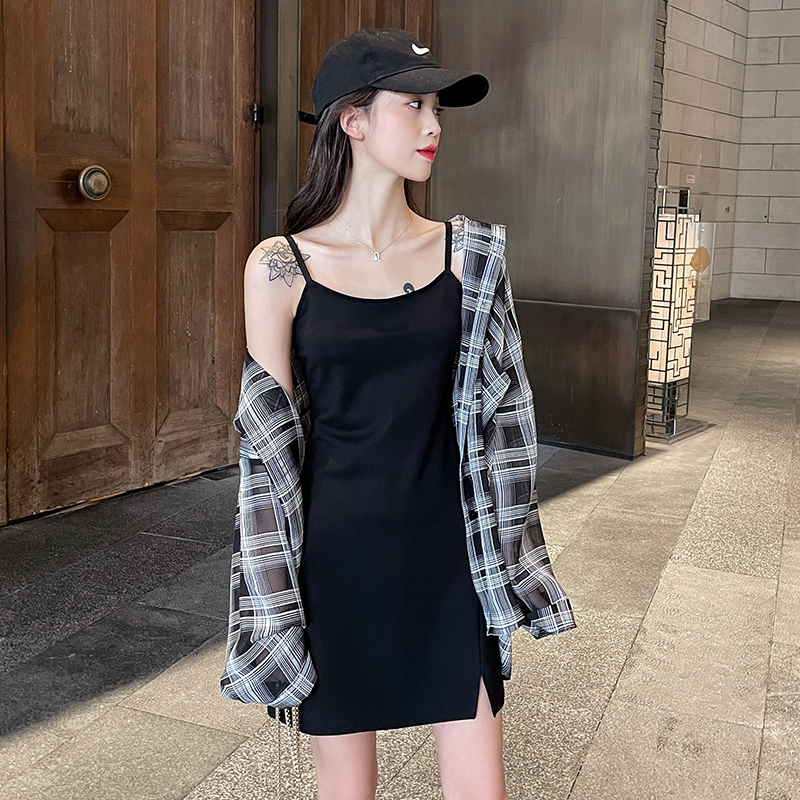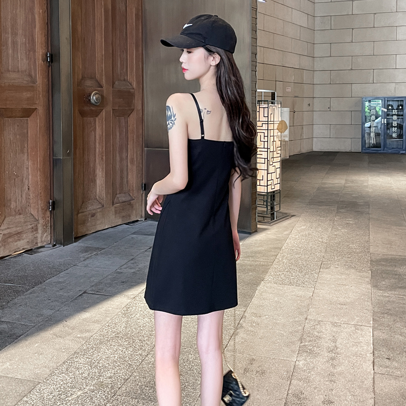 Harness one-piece dress 2023 new female summer pendant with superior sense black sexy little black dress outskirt-Taobao
