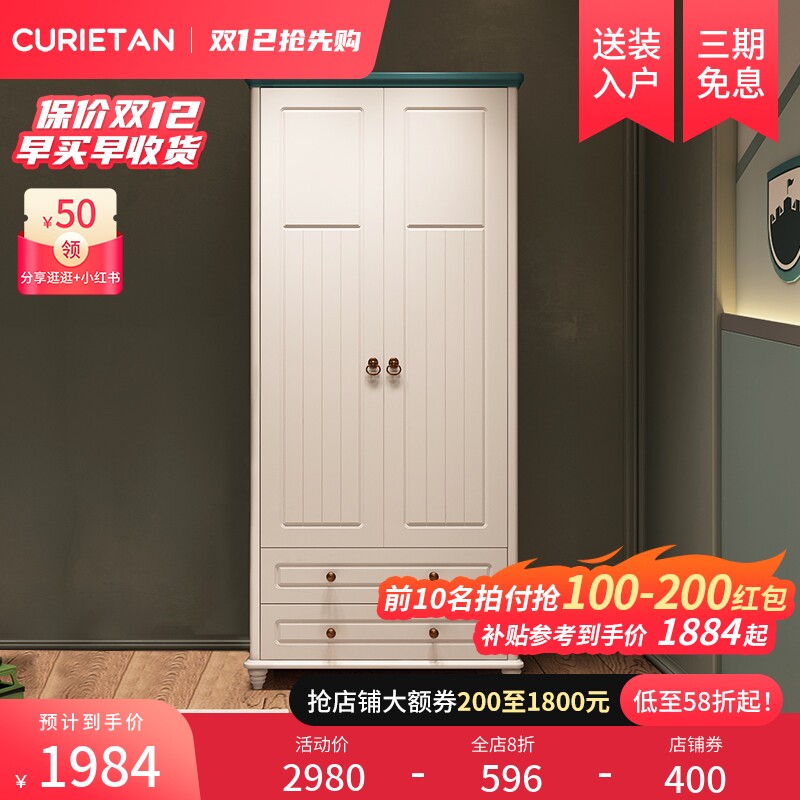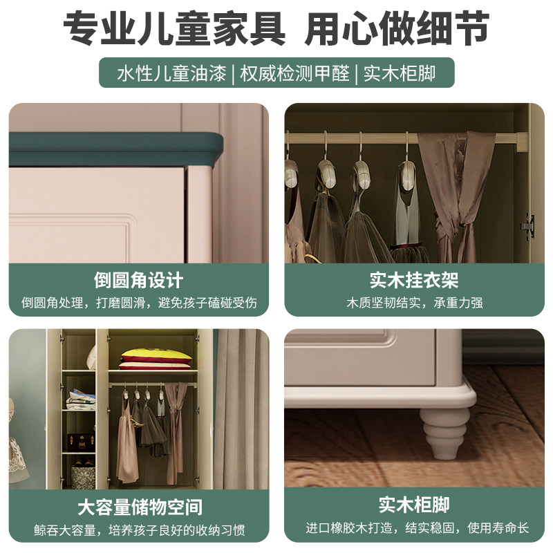 Solid wood children's wardrobe small wardrobe boy two doors three doors baby wardrobe home bedroom simple wardrobe storage cabinet