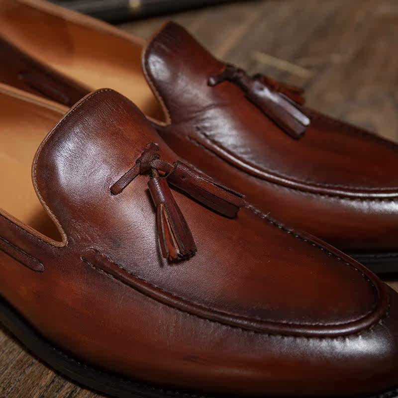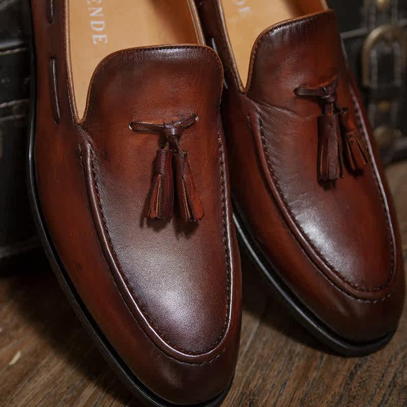Inlen Wind Retro Summer Genuine Leather Lefu Shoes Men's Breathable Comfort Casual Leather Shoes Hand Sewn Mokashin Shoes