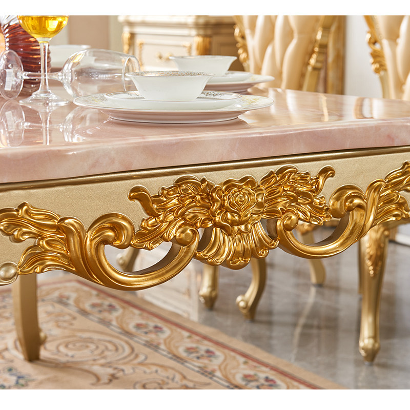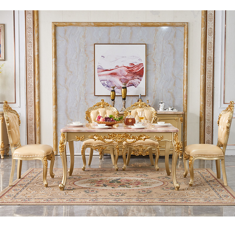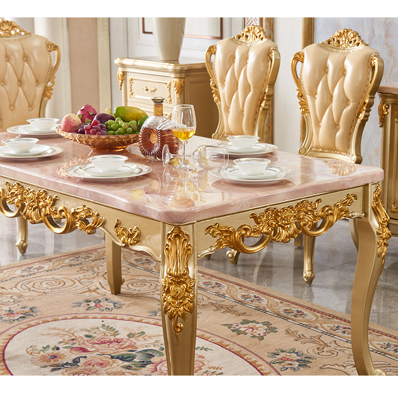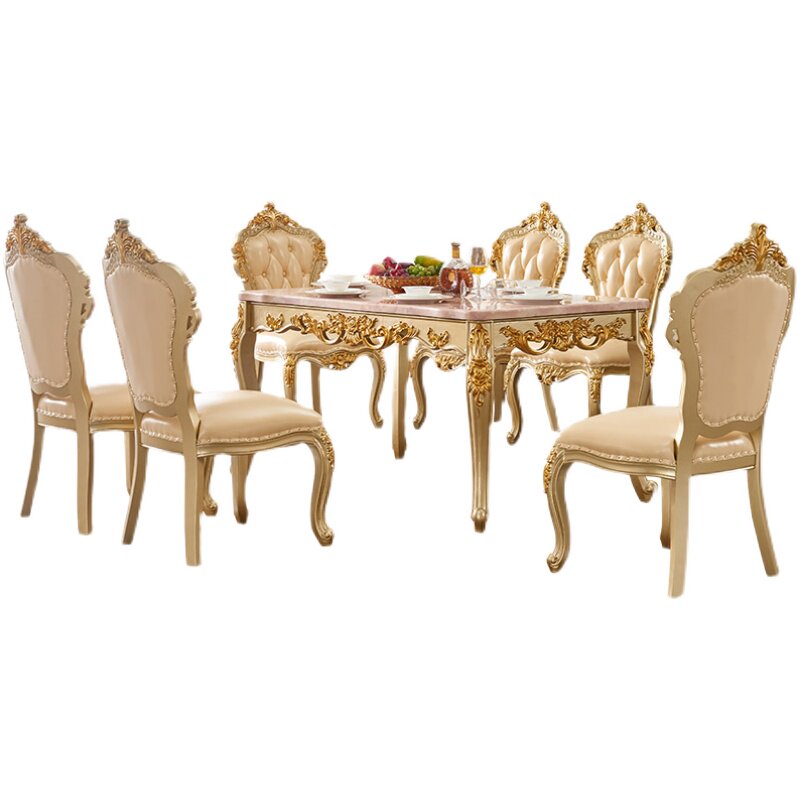 European-style marble dining table and chair combination solid wood square table villa luxury dining room rectangular dining table 4-6 people