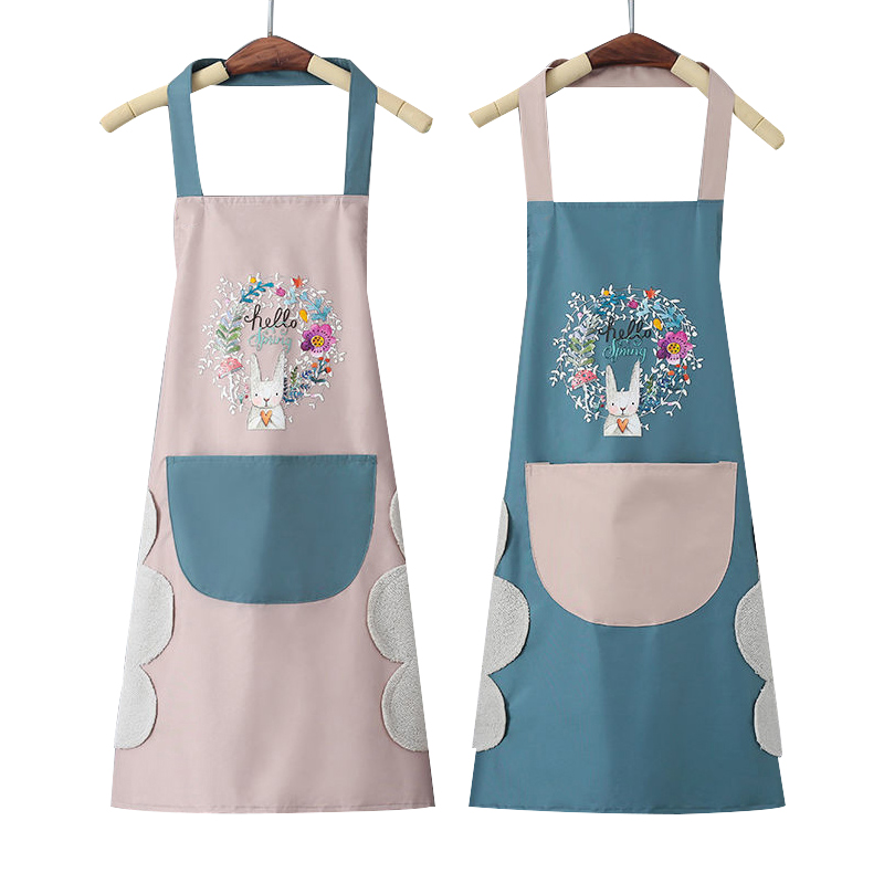 Waterproof coral velvet wipe hands apron housekitchen oil proof working suit female summer temperament fashion apron