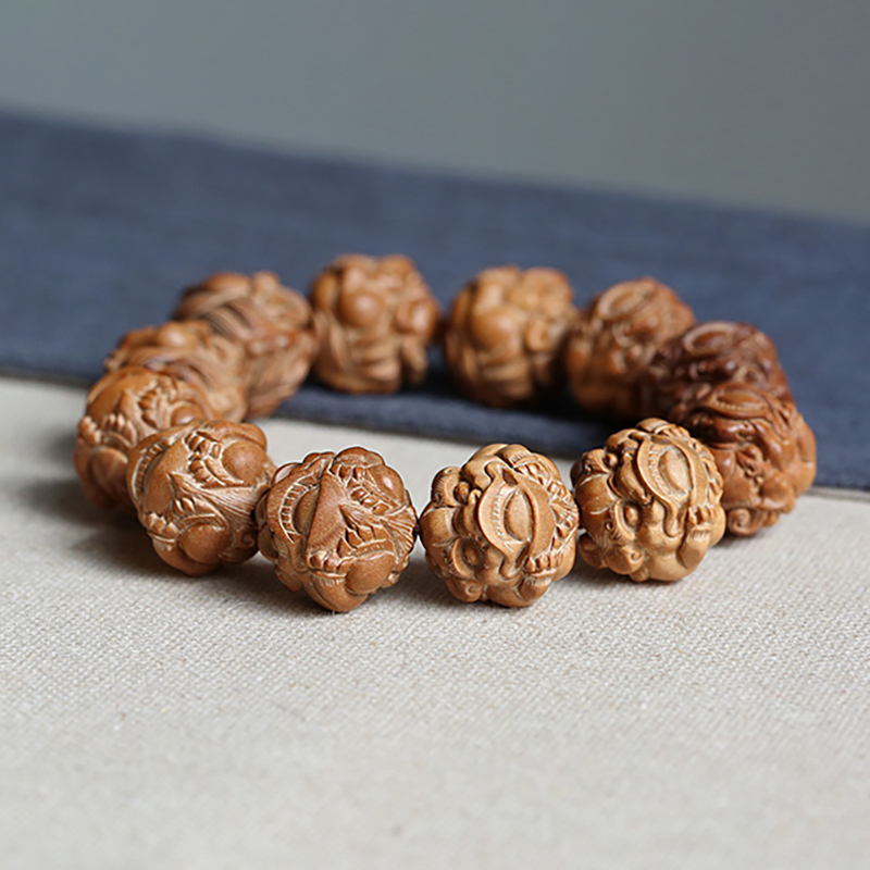 Pixiu India Old Mountain Sandalwood Handstring Carving Male Hand Mahogany Submerged Sandalwood Female Beads God Beast Rosary 0293