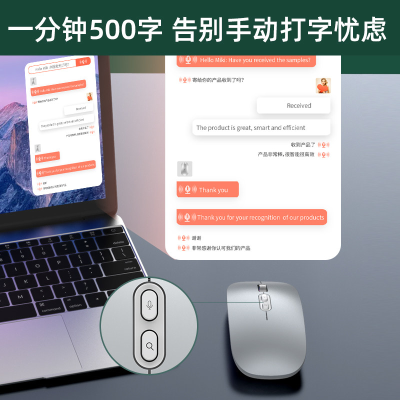 (AI Artificial Intelligence) Apple Voice Wireless Mouse Suitable for Huawei Lenovo HP Dell laptop rechargeable muted voice-controlled recognition talking typing input search translation